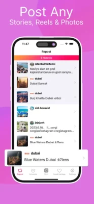 Quick, Easy and Pro Repost app for Instagram, allows you to save your favorite Instagram reels, stories, and posts (both Carousel and single photo) directly to your device.