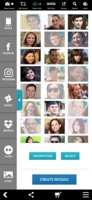- Use pictures from your device, Facebook, Instagram, Google, Dropbox, or Flickr account