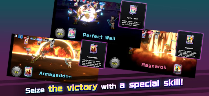 Attack your opponent's weak points instantly and precisely, and use your skill cards and special skills to win!