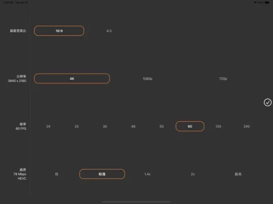 4K @60FPS:iPhone 8 / 8 Plus / X 及较新型号,iPad Air(第四代),iPad Pro 12.9 英寸(第三代及较新型号),iPad Pro 11 英寸(所有型号)。