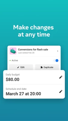 ● Xem thông tin chi tiết theo thời gian thực về tất cả các chiến dịch của bạn ● Bật và tắt chiến dịch ● Nhận thông báo nhanh để biết tình hình về tất cả quảng cáo của bạn ● So sánh các chiến dịch và nhóm quảng cáo bằng chế độ xem song song ● Chuyển giữa các Trang và tài khoản quảng cáo