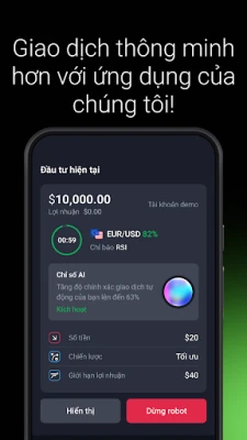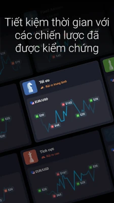 Giao diện trực quan của chúng tôi sẽ giúp quá trình thiết lập tài khoản và tùy chỉnh chiến lược của bạn trở nên dễ dàng hơn bao giờ hết. Bạn chỉ cần chọn loại tài sản, chọn chỉ báo như RSI, MACD hoặc CCI, khởi chạy bot và xem kết quả diễn ra. Hãy tạm biệt giao dịch theo cách thủ công — hãy để bot giải quyết mọi thứ giùm bạn.