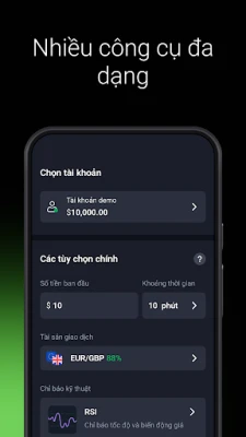 Bạn đang cảm thấy phân vân? Hãy thử nghiệm nền tảng của chúng tôi bằng tài khoản demo. Hoàn toàn không có rủi ro và cho phép bạn thực hành bằng tiền ảo để bạn có thể tích lũy thêm kinh nghiệm giao dịch mà không phải mạo hiểm với số tiền của riêng mình.