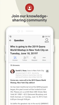 * Ask a question and get helpful answers * Follow topics and browse quality content * Learn from credible people with first-hand knowledge * Answer questions and share your knowledge with the world