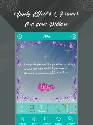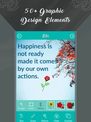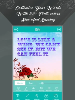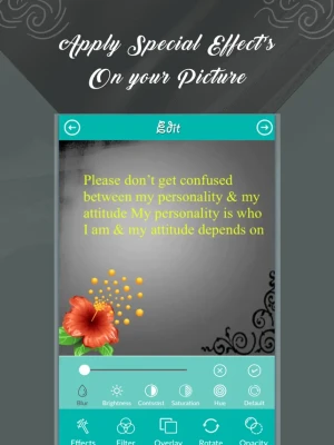 iQuote - Quote Creator is an app with so many designing tools like Color fill, drawing, eraser, unique shapes, photo background effects, blending, masking, image blur, photo filters, typography, flip, set opacity and many more.