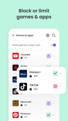 ✓ Block games & apps