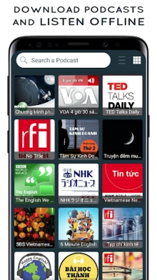 ● sử dụng công cụ tìm kiếm để dễ dàng tìm thấy đài phát hoặc podcast
