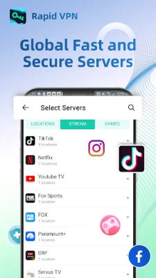 Nếu bạn muốn truy cập nội dung của mình trong lúc đang du lịch vòng quanh thế giới, VPN có thể hỗ trợ liền. Sử dụng Rapid VPN trên thiết bị và không bao giờ bỏ lỡ bài đăng của bạn bè trên mạng xã hội hoặc tập phim mới nhất trên các dịch vụ phát trực tuyến hàng đầu như Netflix, Hulu và ESPN.
