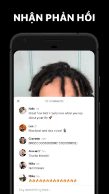 Với ứng dụng rap này, thật dễ dàng để tạo nhạc rap và chia sẻ nó trong cộng đồng hip hop hoặc với bạn bè trên phương tiện truyền thông xã hội. Bạn có thể ghi lại rap tự do và chia sẻ hiệu suất tuyệt vời với thế giới.