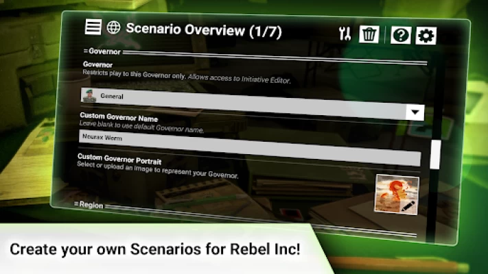 Dive into the editor and develop your own custom scenarios for Rebel Inc. with this powerful yet easy to use tool. Create custom governors & tactics, edit regions, design challenges and build your own initiative trees, before sharing them with other Rebel Inc. players!