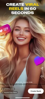 Unlock your inner creative energy with our Reel Maker app. Create mesmerizing videos with stunning transitions and add your favorite music - all in just one minute!