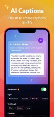 • Custom Captions: Save and reuse your best captions effortlessly.