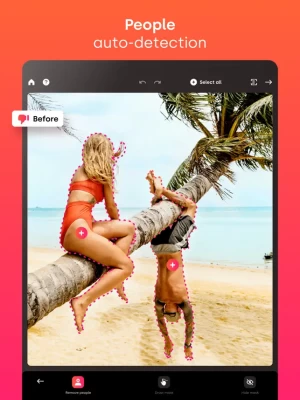 RetouchAI offers you highly convenient tools to identify strangers and crowd. The editor will precisely auto-detect the borders and highlight them for further auto removal. You just need to single them out in one tap