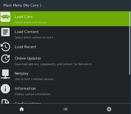 RetroArch is a multi-versatile program, that means that in order for it to do anything, you need modular programs that we call 'cores'. These cores DO NOT COME OUT OF THE BOX. You need to go to "Online Updater -> Core Updater" from within the app to download them.