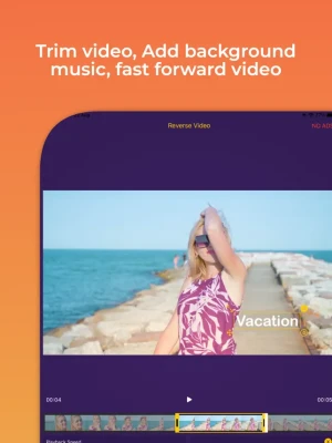 * Reverse selected portion of video clips * Slow fast video speed * Add multiple overlay texts with custom fonts and colours * Add attractive background music independent of video playback speed * Directly record from camera and reverse * Export without any watermark