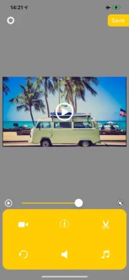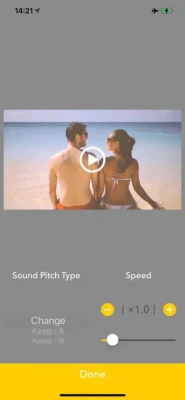 Triming:Press Scissors icon then set the time range you want to need. Playbackspeed:Press Meter icon then set the playback speed to be fast forward/slow motion. Volume:Press Speaker icon then set the volume you want to set. BGM:Press Music note icon then adds BGMs. Reset Editing:Press circle arrow icon to reset these editings.