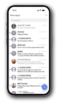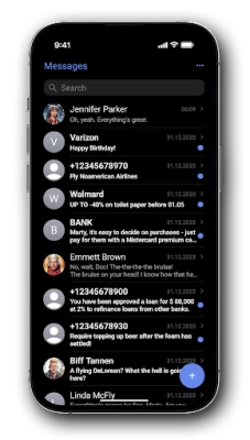Fast SMS messenger with iOS 16 style interface. Free and no ads. Supports work with two SIM cards.