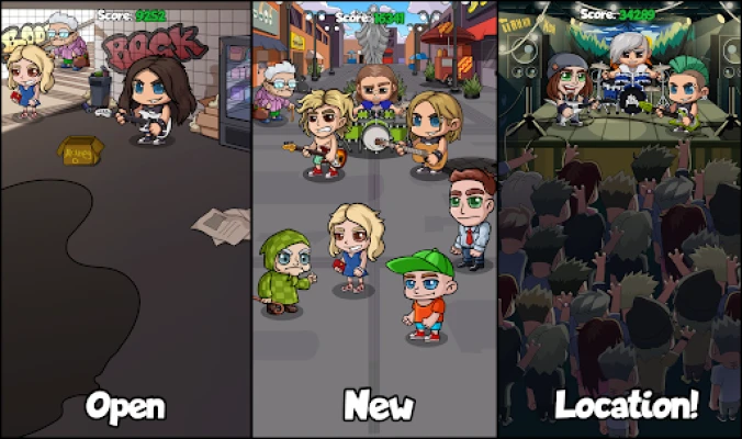 - Different Locations: Perform in the subway, on the streets, or in clubs. Climb the ranks to perform at massive rock arenas.