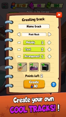 In this music simulator, your journey starts in a small garage or musician's cabin, where you’ll take your first steps as an aspiring punk rock star. Upgrade your instruments, improve your skills, and make your name on the local music scene. Your garage or cabin needs upgrades to keep up with your career's growth. Just like real life, a musician’s career depends on constant hard work and progress!
