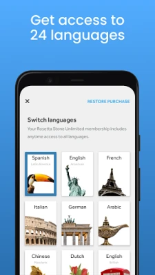 Học viên hiện tại của gói Doanh nghiệp và Giáo dục có thể sử dụng ứng dụng di động Rosetta Stone không giới hạn. Các tính năng có thể thay đổi đối với học viên gói Doanh nghiệp và Giáo dục.