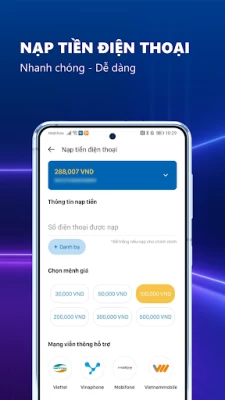 - Tiết kiệm chi phí khi thực hiện chuyển tiền nhanh 24/7 đến 47 ngân hàng khác trên toàn quốc với mức phí thấp, hạn mức giao dịch lên đến 1 tỷ đồng/ngày.
