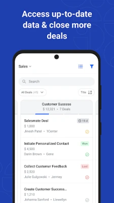 Stay ahead in your sales game with the Salesmate CRM mobile app, available for Android phones and Tablets. This user-friendly app lets you manage your sales pipeline, connect with your team, and close deals anytime, anywhere.