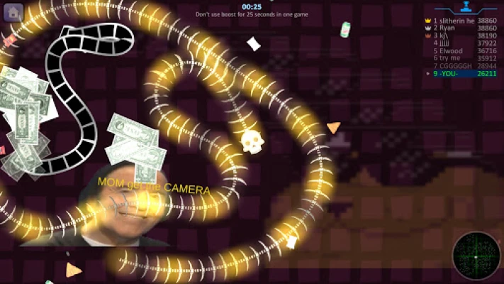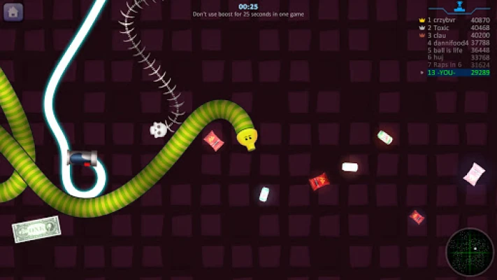 Sử dụng trợ lực để nhanh chóng di chuyển trò chơi trợt của bạn trước những con rắn khác.