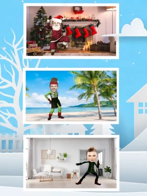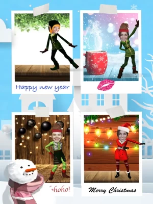 Are you ready to live Christmas spirit? Do you love to dance with the elves and Santa Claus? Place a 3D model of your face onto the Christmas characters and dance.