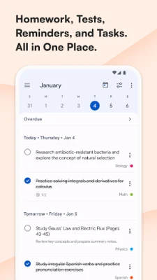 Writing down homework, assignments, exams and reminders is simple and fast and daily notifications will help you never forget anything. The built-in calendar is highly optimized for the needs of students and allows you to manage your events and activities more easily.