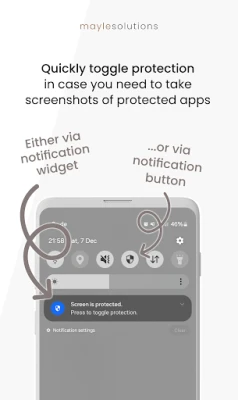 If the hacker protection is active, attempt to take a screenshot. If Android notifies you that screenshots are restricted, the hacker protection is working, and spyware is hindered!