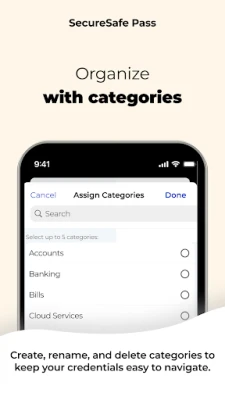 - Organize with categories: Create, rename, and delete categories to keep your credentials neatly grouped and easy to navigate.