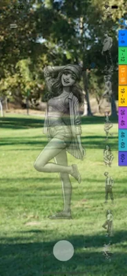 • Sidebar menu gives instant access to poses, saved photos, and community features.