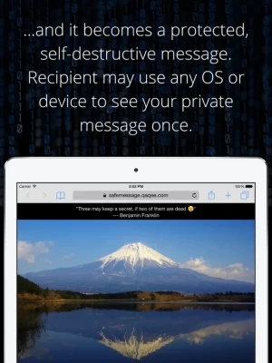 Send safe private messages that self-destruct after seen once. Use with WhatsApp, SMS, Message, Email, Skype, Messenger and others. Message recipient doesn't need to install anything to see your message.