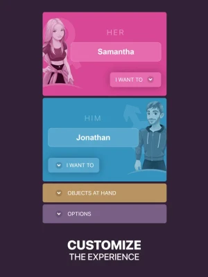 Personalize the game experience with many customizable options (first names and favorite practices for him and for her, naughty objects at hand, duration of the game...).