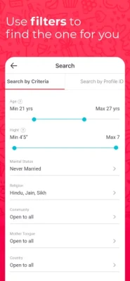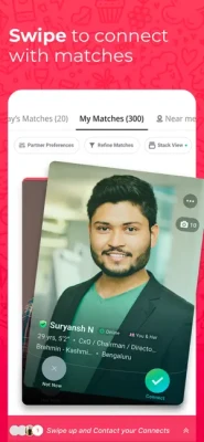 ● Search bride or groom by community, city or profession & find new matches every day