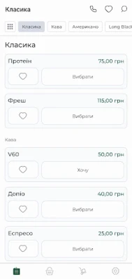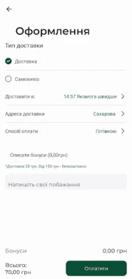 • самостійно замовити страви з меню: • встановити бажаний час доставки замовлення за вказаною адресою; • вибрати зручний спосіб оплати; • додати та зберегти адреси для доставки; • бачити історію ваших замовлень та повторно додати замовлення у кошик одним дотиком; • формувати wish-лист; • дізнаватись про діючі акції.
