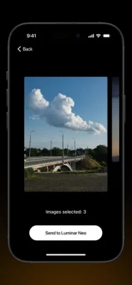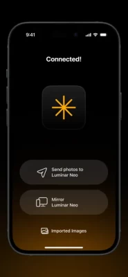 Luminar Share is an app that allows Luminar Neo users to transfer photos from desktop to mobile (and the opposite direction) wirelessly. It also makes it easy for users to share edited photos to their social media accounts.