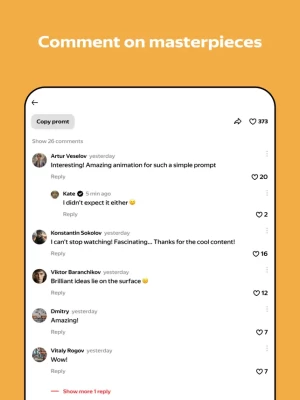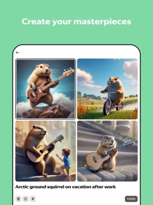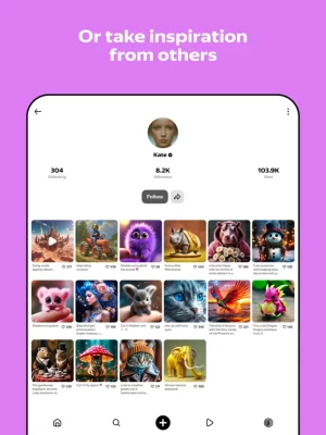 And while the AI is generating your image or text, you can scroll through the feed, comment on other users' posts, and like them. Feed has a few sections: your masterpieces, recent, and the best of the day, the week, or all time. You can save your favorite pictures to your phone.