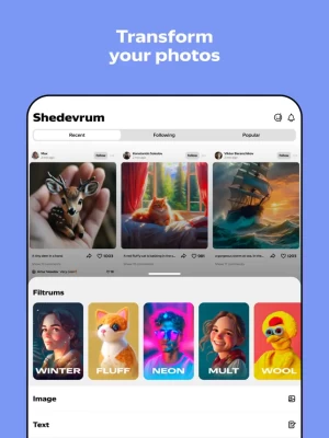 Write anything in English or Russian, and the Yandex neural network will turn what you describe into a picture or text. Or transform your photos using filtrums. It's completely free! Just download the app and dive into the world of digital art.