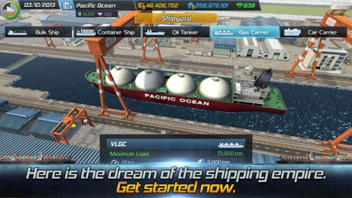 When you first start your game, your company starts with a tiny bulk ship, but depending on your management skills and efforts, your company can turn into a global shipping company with huge fleet of vessels