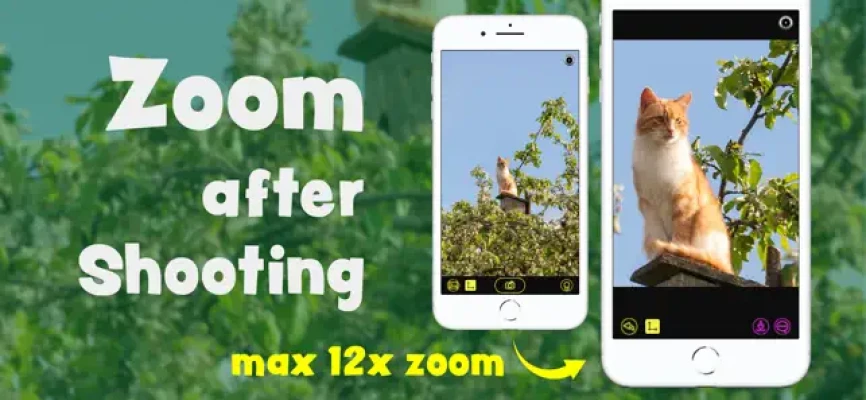 When saving, image quality degradation can be reduced by the special algorithm of Shoot'n Zoom. In addition, you can also load a photo from your Photo Library to trim.