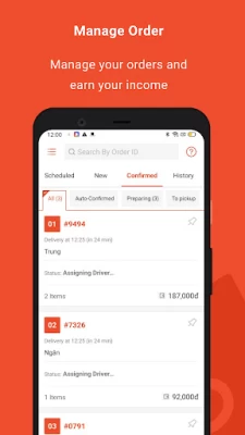 - Quản lý đơn hàng: Nhận và thực hiện đơn hàng cũng như theo dõi tình trạng đơn sau khi Tài xế đã đến lấy món.