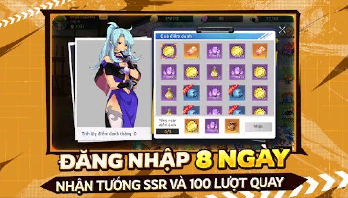 Chỉ cần vào game và đăng nhập 8 ngày, bạn sẽ sở hữu cho mình dàn anh hùng cực bá đạo