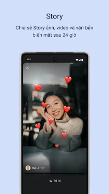 • Chia sẻ Story ảnh, văn bản, và video biến mất sau 24 giờ. Cài đặt Quyền riêng tư cho phép bạn kiểm soát người có thể xem Story.