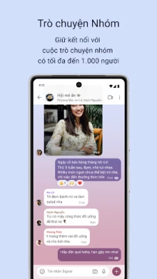 • Giữ kết nối với các nhóm trò chuyện với lên đến 1.000 người. Kiểm soát người có thể đăng nội dung và quản lý thành viên nhóm với cài đặt quyền quản lý.