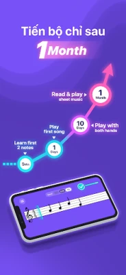 Giao diện của ứng dụng đơn giản và tối giản. Nó giúp tập trung và mang lại trải nghiệm âm nhạc sâu sắc khi bạn học piano thông qua tương tác với ứng dụng và được phản hồi liên tục.