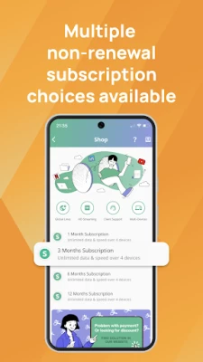 - The apps provides various susbscirption options in terms of period, data, speed, device number.