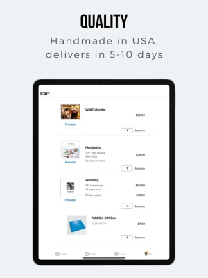 - Download our app, create a free account, select between our photo books, wall prints, or other photo products you want from the catalog, import your photos, make any customizations you desire, and submit your order.
