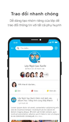 - Xem được danh sách phụ huynh các lớp mà mình chủ nhiệm, danh sách các giáo viên khác trong trường để trực tiếp trao đổi, lưu vào danh bạ, chat nhóm với các phụ huynh và các giáo viên khác… một cách dễ dàng.