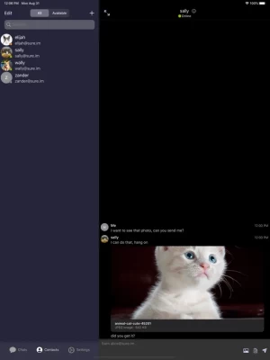 - Photos and other files easy sharing in private chats and in group chats, even with people using different XMPP clients.